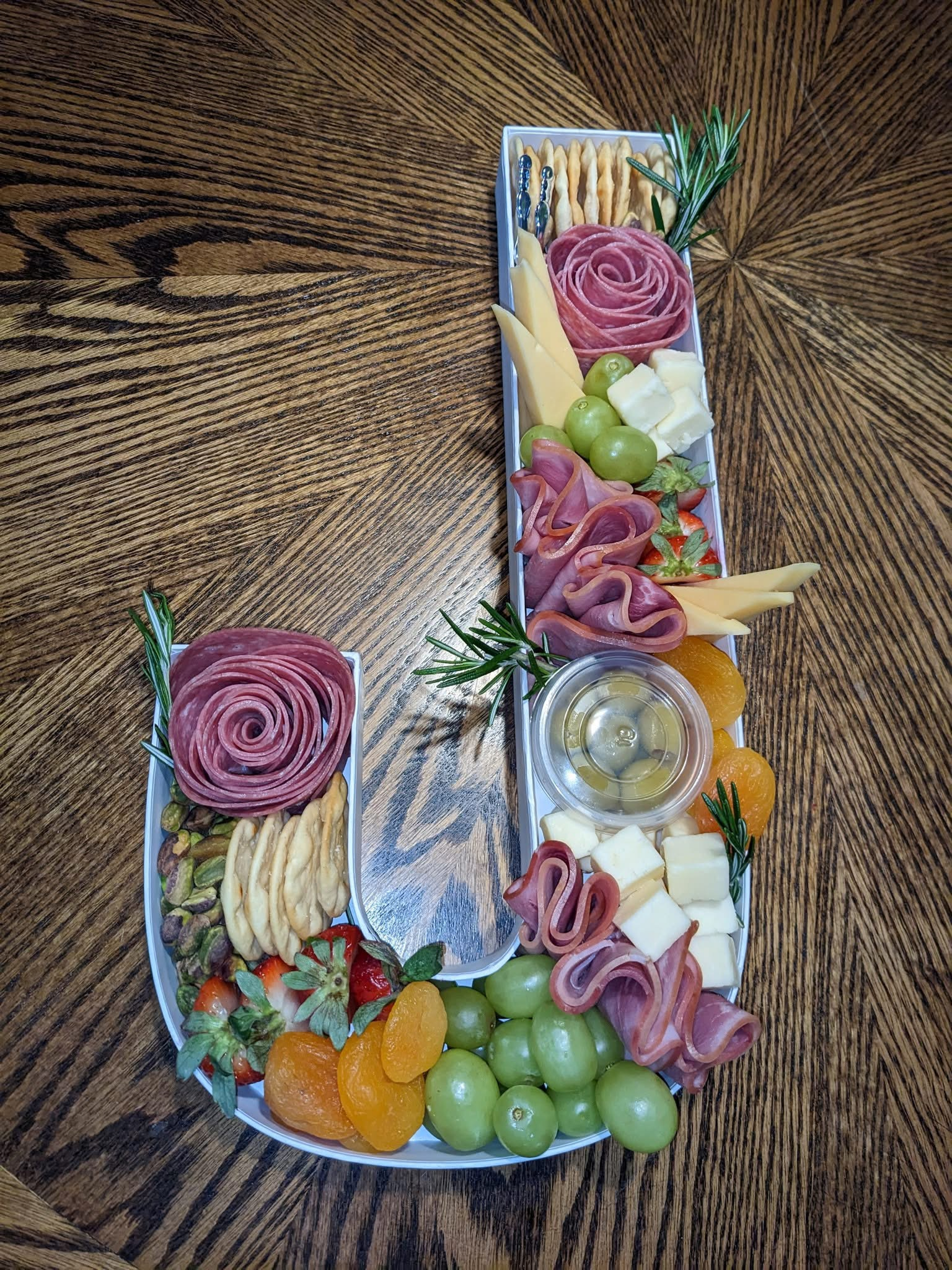 Celebrate any occasion with a custom letter or number filled with artisan cheeses, cured meats, fruits and accompaniments. Beautifully arranged and made to impress.